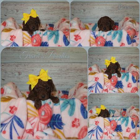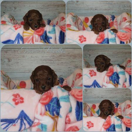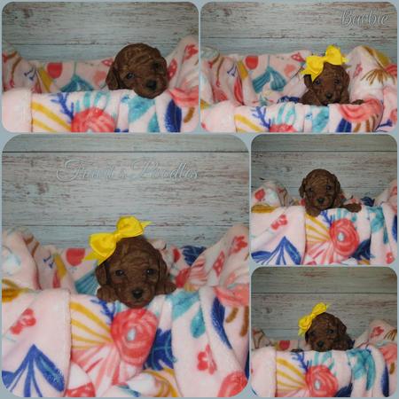 On 2/24/2026 Ginger and Pongo welcomed five gorgeous dark red Toy Poodle babies. Three females and two males. See below for photos.