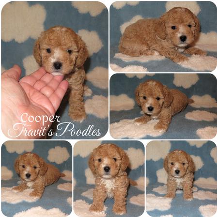 Cooper is an adorable red/apricot and white Toy Poodle. Currently 5 weeks old. Ready around 9 weeks old. He is Available $3500
