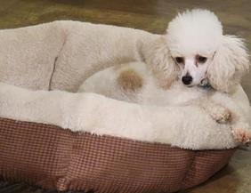 Meet Miss Lollipop Parti. Call name Lolli. She is our first Akc Parti Toy Poodle here at Travit's Toy Poodles. 5-6 pounds and around 9" tall. She is White and red in color. She is Very Playful and Loving. Doesn't know a stranger! Loves playing with the Puppies! She is Health tested clear with Animal Genetics.