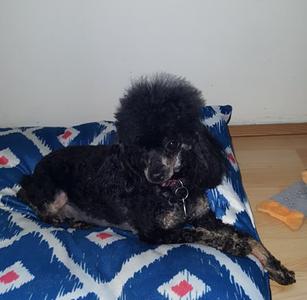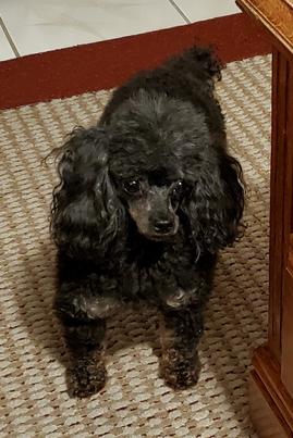 She is a Gorgeous AKC Jet Black and dark red phantom poodle. She is so elegant looking, with the most beautiful, soft coat! She loves the outdoors, running, playing, and exploring everything! Very kind and free spirited! She currently weighs 5 pounds, 4 ounces and is 9.5" tall. With an all Black and red pedigree.