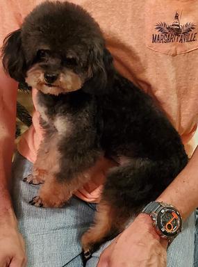 Caviar is an AKC Black and red Phantom Toy Poodle. He is playful, yet very kind and sweet. He is 5.6 pounds and 10" tall.